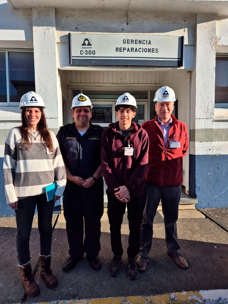 On May 12th, Professor Roberto Cárdenas (head of the shore project), Dr. Constanza Ahumada (deputy head), and MSc student Ignacio Ortiz visited Asmar Talcahuano’s facilities. They discussed the challenges of ship electrification, port equipment maintenance, the use of hydrogen for crane operations, and potential alternatives for future cooperation with Asmar engineers and technical personnel.